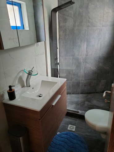 Μοντέρνο μπάνιο με ντουζ τύπου jacuzzi