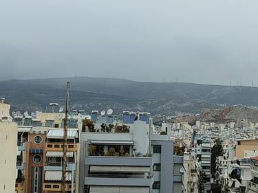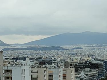 Η θέα ανοίγει μπροστά σου σε όλο το αστικό τοπίο, με τις πολυκατοικίες να απλώνονται μέχρι τον ορίζοντα και τα βουνά να σχηματίζουν ένα σταθερό, ήρεμο φόντο. Το βλέμμα ταξιδεύει από τις στέγες της πόλης προς τις γραμμές του Υμηττού και του Αιγάλεω, που ξεχωρίζουν καθαρά και δίνουν αίσθηση βάθους και χώρου. Η θέα αγκαλιάζει δύο από τα πιο χαρακτηριστικά σημεία της Αττικής. Από τη μία πλευρά, η Ακρόπολη ξεχωρίζει στον ορίζοντα, διακριτική αλλά πάντα παρούσα, φωτίζοντας την πόλη και θυμίζοντας τη διαχρονική της ιστορία. Ιδιαίτερα τις απογευματινές και βραδινές ώρες, όταν είναι φωτισμένη, δίνει μια μοναδική αίσθηση μεγαλείου και ηρεμίας.